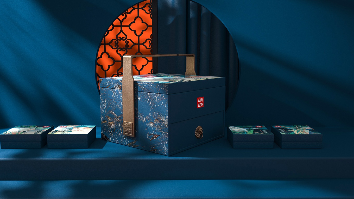 在針對云尚古茶進行包裝設計時,我們還面臨著一個問題:如何選擇包裝顏色。云尚古茶主要產品是云南特產的苦甜茶,在大眾認知中,茶葉往往會和綠色行進搭配,但這樣就會失去云尚古茶的地方特色,與其他品牌同質化。所以在云尚古茶包裝的顏色選擇上,我們選擇了云南主要少數民族,傣族和苗族民族服飾中經典的藍色進行包裝設計。既不失地方特色,又顯得高端不失價值。