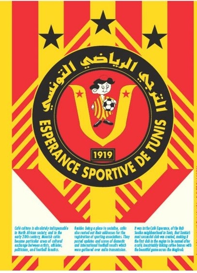 突尼斯希望體育足球隊的logo可以追溯到該俱樂部在突尼斯首都突尼斯市的 Bab Souika 街區(qū)的起源。俱樂部的名字來源于當?shù)刂目Х瑞^ Café Esperance,足球愛好者聚集在這里觀看比賽和喝咖啡。足球俱樂部代表了北非更廣泛的傳統(tǒng),除了作為社交中心之外,咖啡館還有出租其場地用于注冊體育協(xié)會的傳統(tǒng)?!坝捎诒狈悄滤沽钟绊懥薮?,不熟悉穆斯林文化和足球的人可能沒有意識到咖啡館和足球之間的聯(lián)系,”皮納爾繼續(xù)說道“非洲的許多足球logo并非純粹出于營銷角度,而是體現(xiàn)了文化與設(shè)計之間誠實、綜合的互動。”